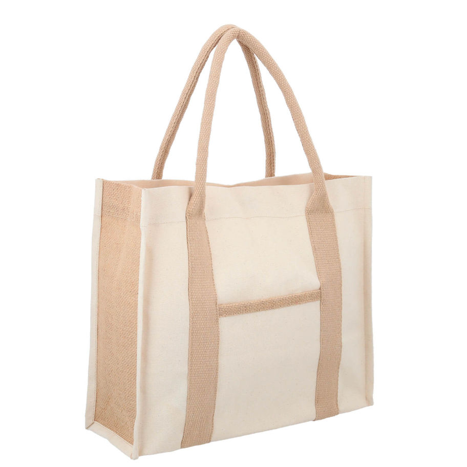 Bolsa de loneta con yute, 1 compartimento con bolsa frontal, broche magnético, fuelle y asas.