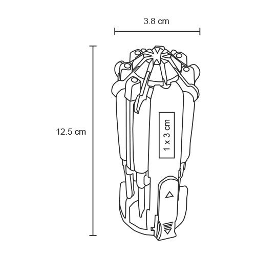 Multi herramienta 8 en 1 con cuerpo de plástico, desarmador, clip y 6 leds, utiliza 3 baterías AAA (no incluidas).