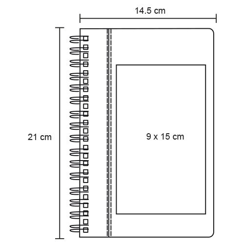 Libreta de poliuretano con espiral metálico y 70 hojas rayadas.